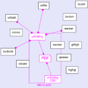 Using a wiki as an editing-design environment shifts multiple things around. What we currently refer to as wiki-to-print or wiki-layouting [i think we need a cute catchy name!] is actually a genealogy of practices of generating publications through a wiki. The trail includes work done at Constant in Brussels, Open Source Publishing in Brussels, the making of the book Volumetric Regimes in between Barcelona-Brussels-London-Rotterdam by Possible Bodies and Manetta Berends, the setup at The Institute for Technology in the Public Interest (TITiPI) by Femke Snelting and Martino Morandi in Brussels, the book Making Matters made by Hackers & Designers in Amsterdam, the making of the research newspapers Toward a Minor Tech and Content/Form with Geoff Cox, Christian Ulrikson, Winnie Soon and Varia/CC represented by Simon Browne and Manetta Berends in London-Rotterdam-Berlin. In all these occasions, wiki is used as a shared place for materials, editorial work and the making of the layout. Writing and design work can happen in a non-linear way and evolve parallel to each other, which invites to rethink editorial production workflows. Publications can be re-rendered over time, embracing the changes and transformations that might have emerged in between now and the previous edition. The versioning tracker and features like transclusion challenge traditional notions of authorship and modes of writing. Often a wiki becomes a rich messy archive and plays an important role as community infrastructure.